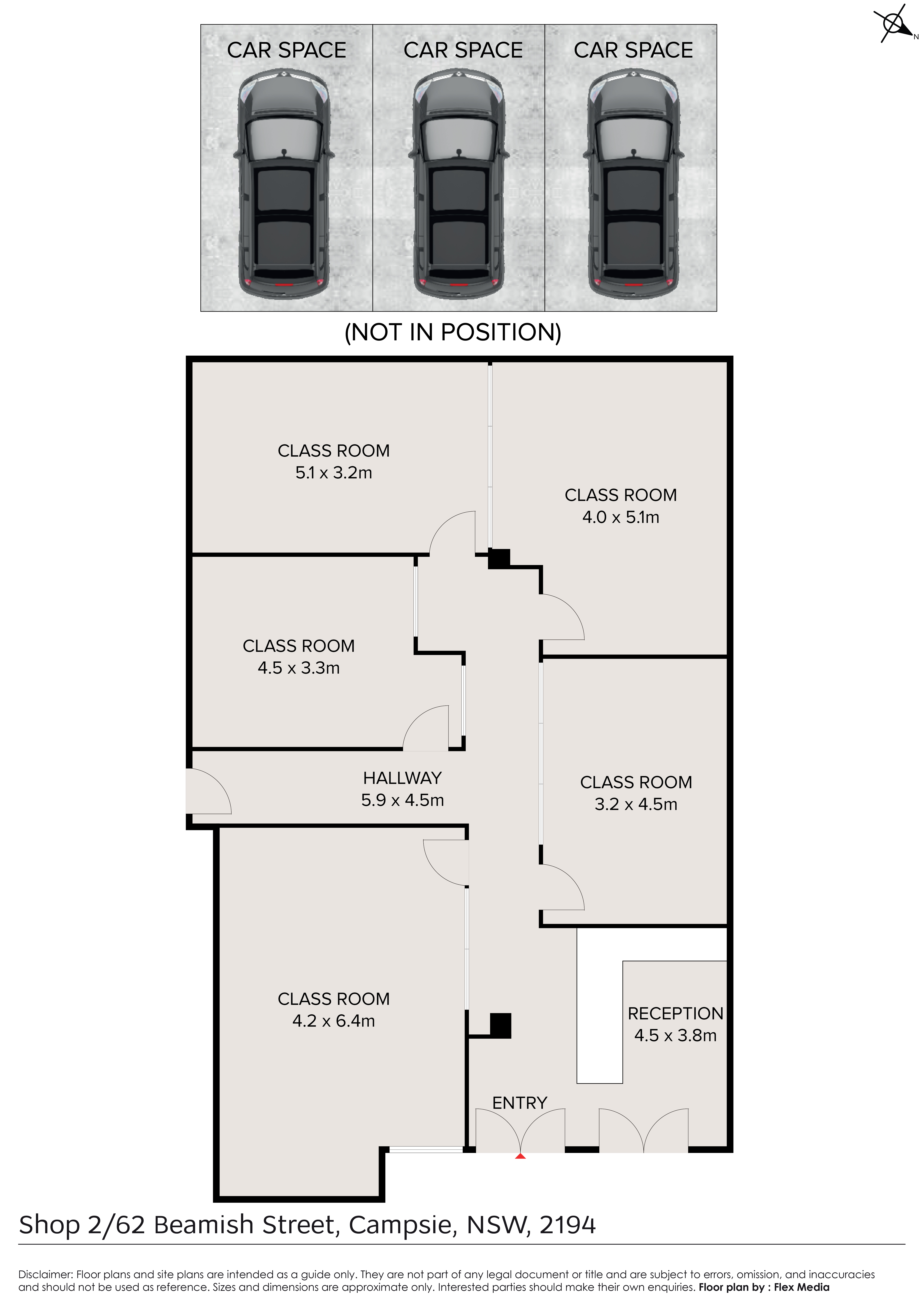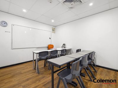Currently operated as a tutoring centre, the property offers approximately 130m² of internal area plus 3 secure car spaces, smartly configured into five classrooms and a reception area, with convenient common bathroom amenities located to the rear.